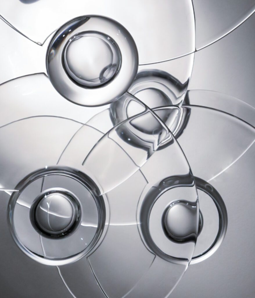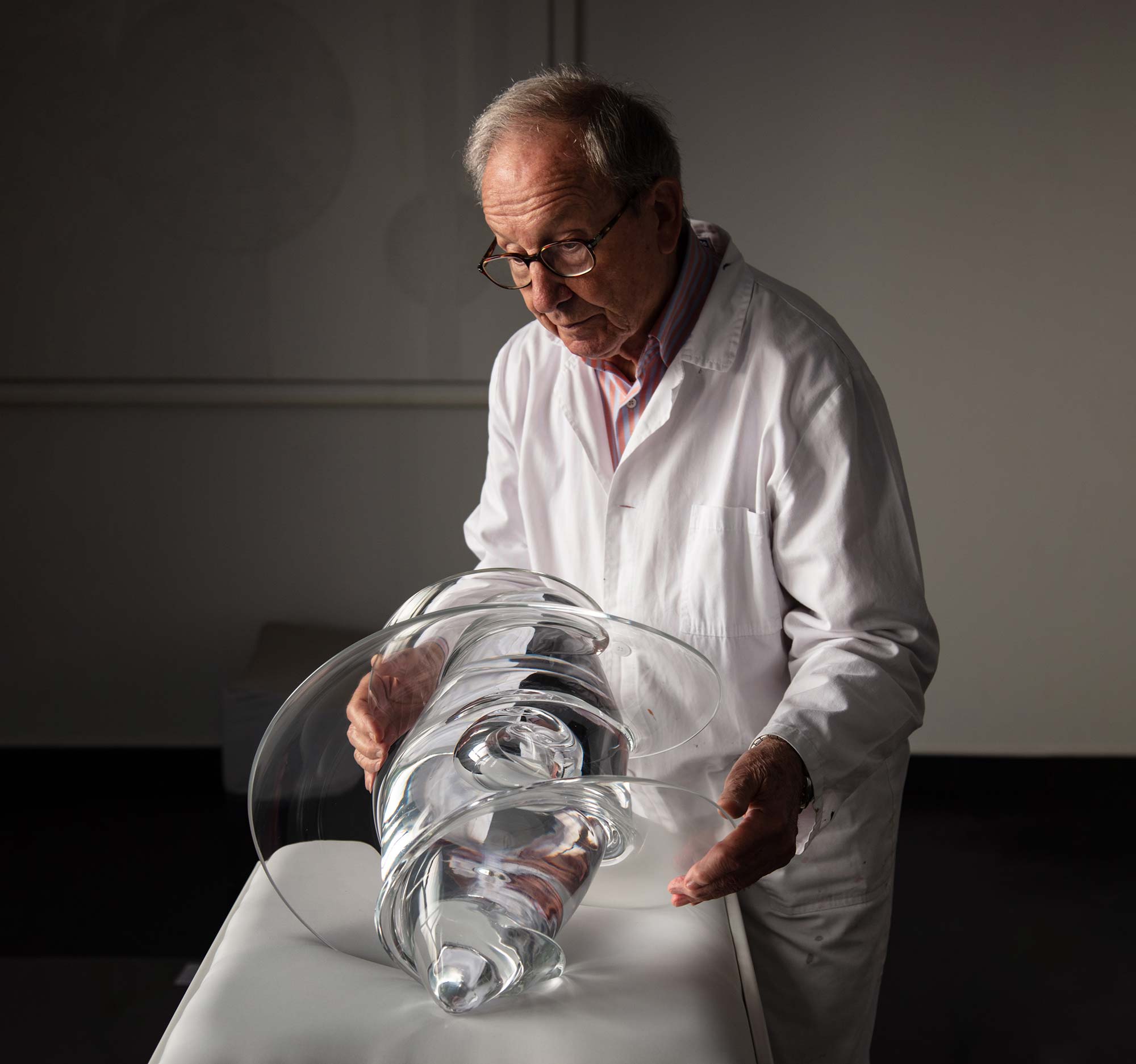 …The artist imposed an absolute rigor on the material without rebelling against the origin of the glass itself. This rigor leads us to the extreme purity of its composition, which is enhanced precisely by the extraordinary coincidence of the values of the material and the form. Both express themselves in projecting an ideal geometry full of fascination for our research of contemporary men, which we try to concretize in art, beyond any hedonism, as a meeting point between the pure concept in its essence and the nature that surrounds us in its reality.