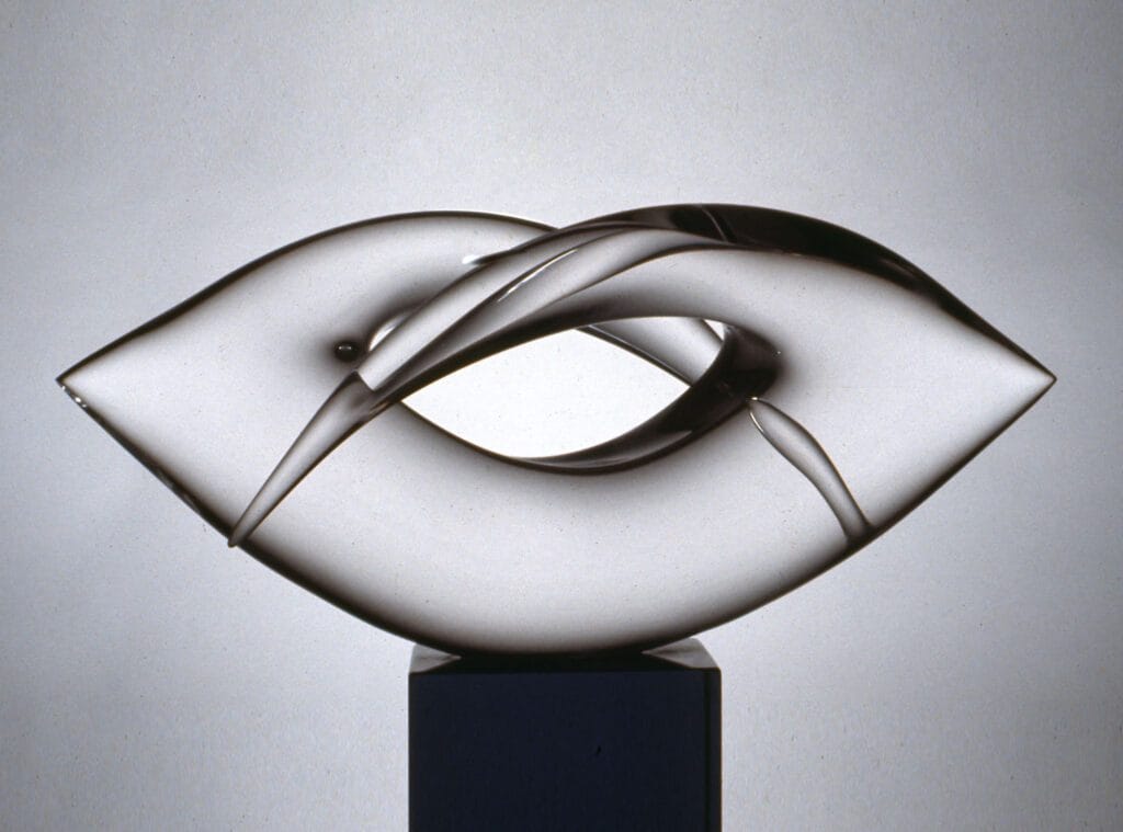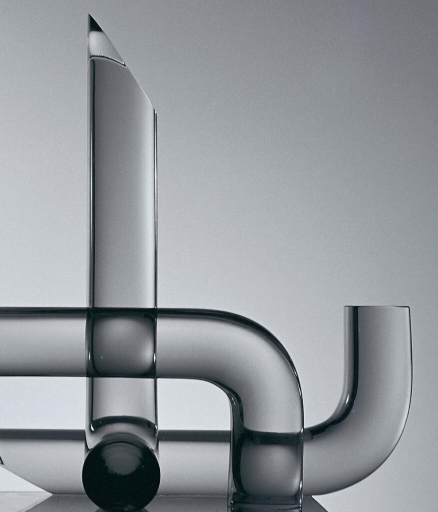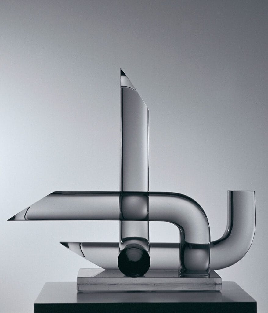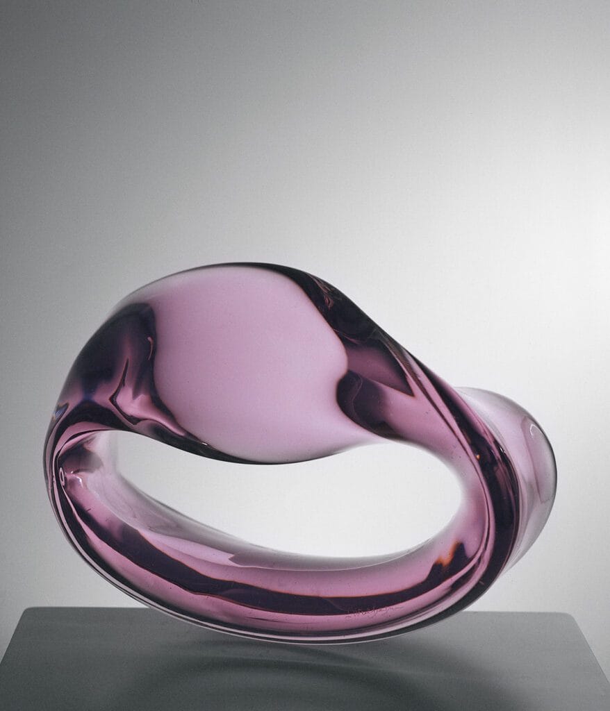 …Livio Seguso’s glasses do not indulge in technical effects. They are made of hot glass, generated from a nucleus intertwined into the dialectic of light, whose illuminated and illuminating form is an ambiguous reflected image. […]In the emblematic symbolic form, the annulment of sculpture as analysis occurs through the concession that sculpture must be poetry. The tight linearity of curves and counter-curves, the simultaneity of imperceptible movements, and the bringing back of the plane of convex and concave profiles capable of isolating fragments of unmistakable sensuality translate this rapacious ecstasy with restlessness and passionate melancholy.